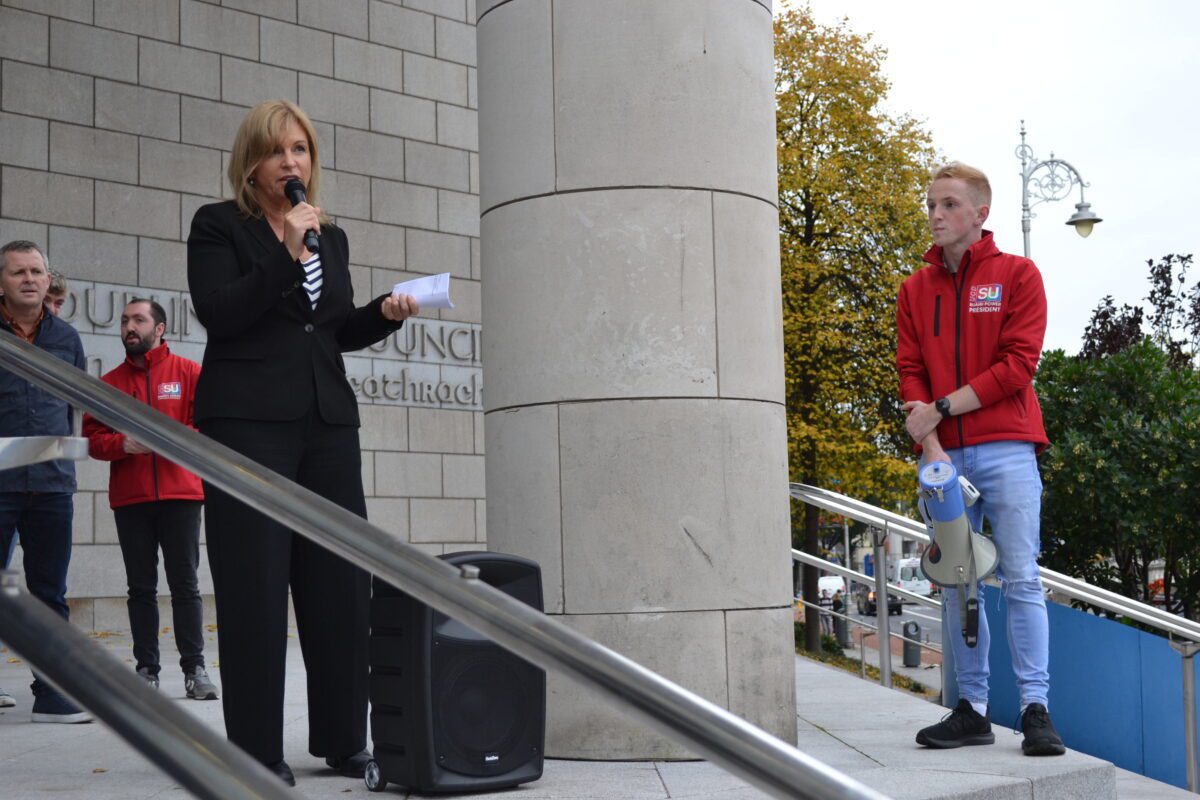 One of the speakers at the event was Sinn Féin spokesperson for further and higher education, Rose Conway Walsh who told the crowd that ‘things have to change,’ before adding ‘with students in poor accommodation and people being pushed into poverty, it can not go on, it is no longer acceptable.’