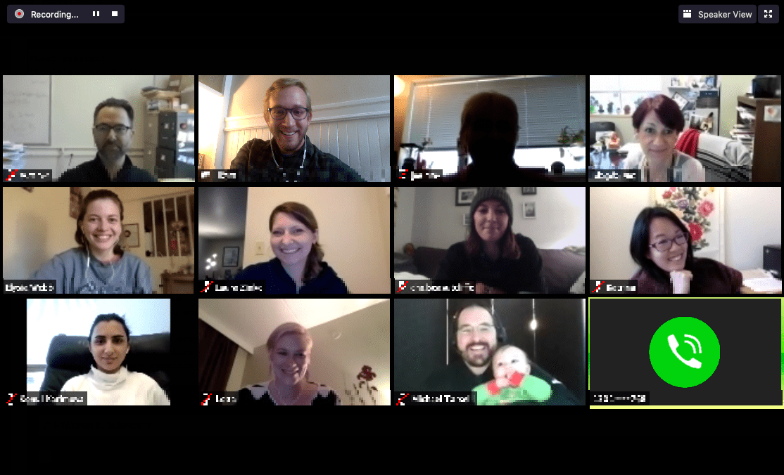 It was silent again. One participant infected the call with a low droning sound like a printer running. It became so loud that the culprit appeared as speaker, mouth agape, looking at the screen with visible fear.