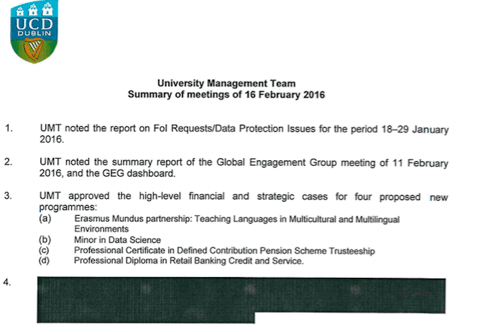 The College Tribune has obtained the summary minutes of the University Management Team for 2016, the UMT is the key decision making authority in UCD. The minutes dating from January to May were gained through the Freedom of Information Act.