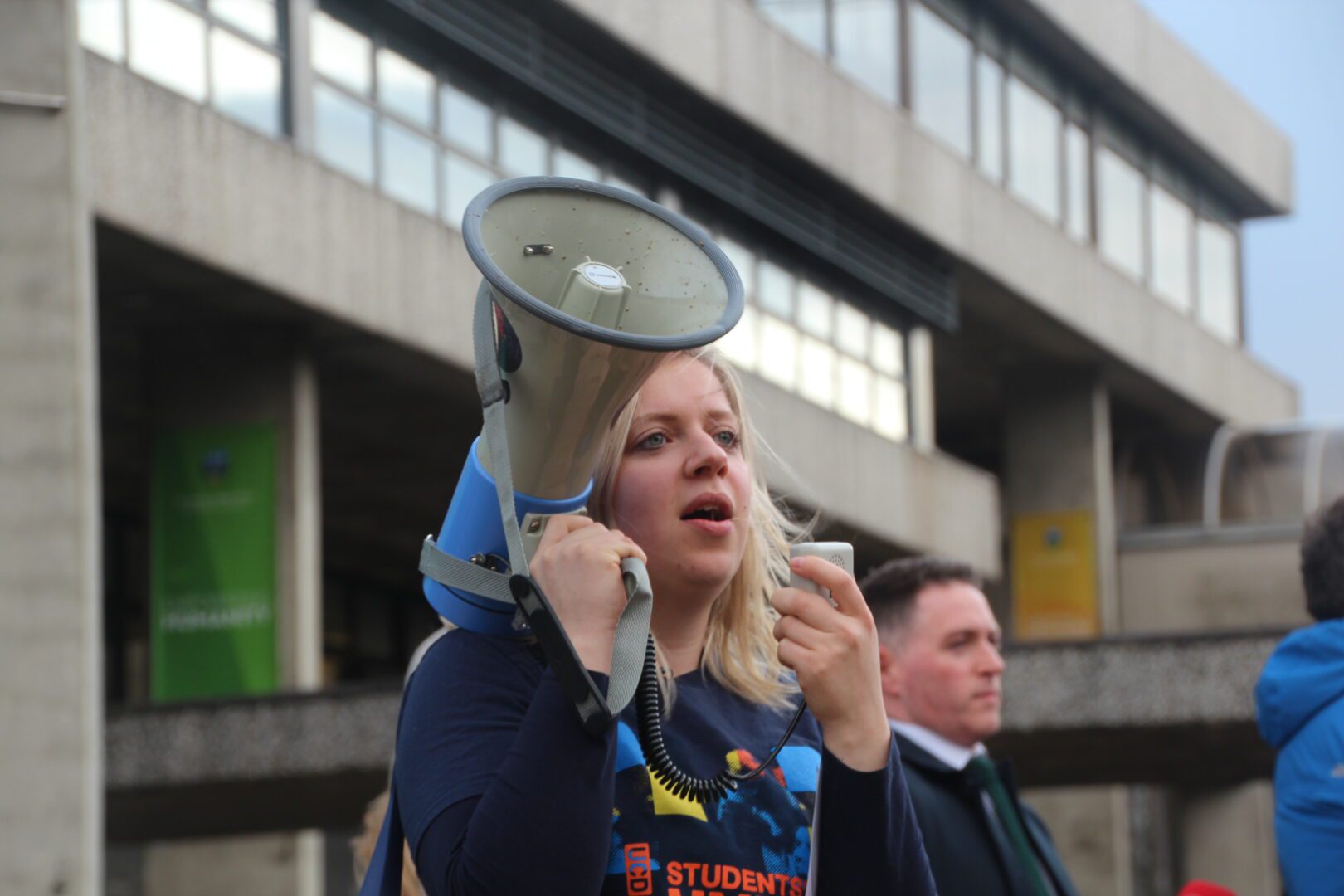 When the group arrived at the building, students began chanting directly below the third-floor windows of UCD President Andrew Deeks’ conference room. While the chanting continued, six student leaders made their way to the UMT meeting. UCDSU President Joanna Siewierksa, Graduate Officer Conor Anderson and a representative from UCD Anti-Casualisation entered the UMT meeting. They were not allowed recording devices or photography. They read out a statement to President Deeks and his colleagues. The student leaders also submitted their demands and a petition signed with 2000 signatures to the committee. These demands included: an immediate retraction of the decision to increase on-campus rents, a reduction of on-campus accommodation rent and the establishment of a student rental-assistance fund for students on and off-campus.