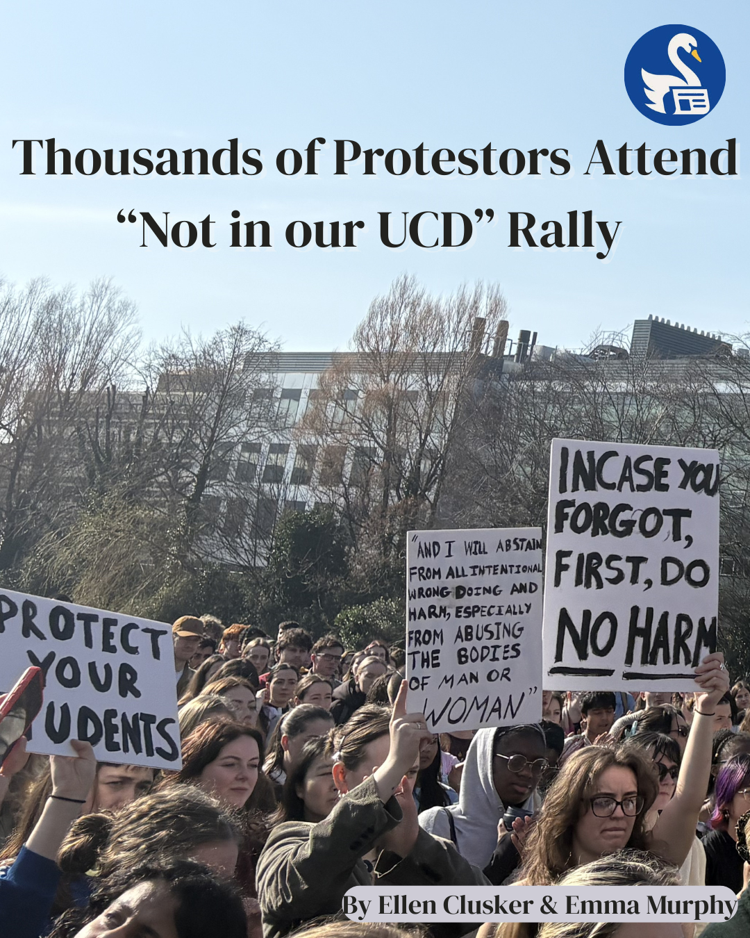 Thousands of protestors attended the “Not in Our UCD” rally on March 4. The protest was held in solidarity with a UCD Medicine student who was a victim of rape and image-based sexual assault (IBSA). The demonstration began outside O’Reilly Hall before moving to the Quad outside the Health Science building.