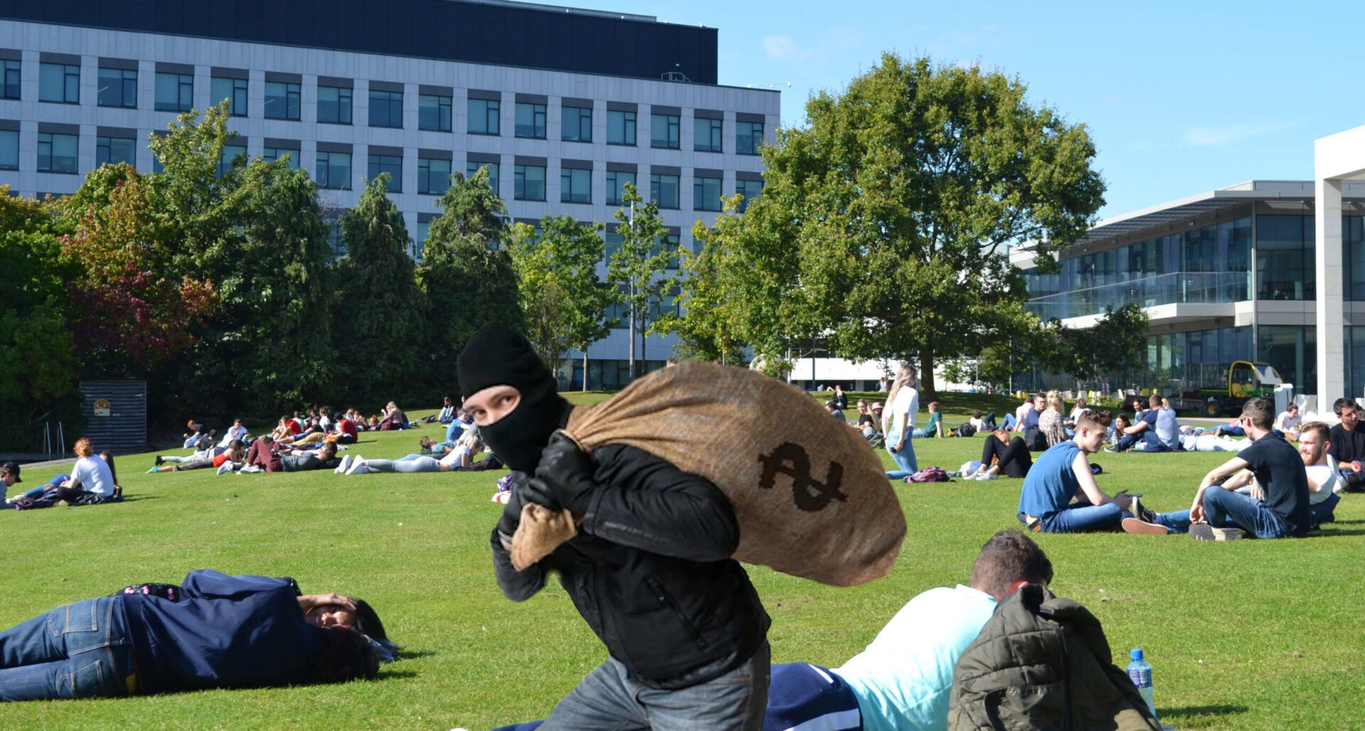 At approximately 2:40 Am on September 1st, 2020, the outline of what appears to be President Amadeus Deekz, was caught on Swan Cam. He is seen exiting UCD student Centre, holding two heavy haversacks. The footage then shows the balding male rummage in the sacks, pulling out wads of cash and sniffing them. When playing the footage one can also detect what sounds like a stereotypical villainous laugh, followed by ‘SWEET STUDENT LEVY FEES. COME TO PAPPA’. Although this footage was incriminating enough, we felt further corroborating evidence was necessary.