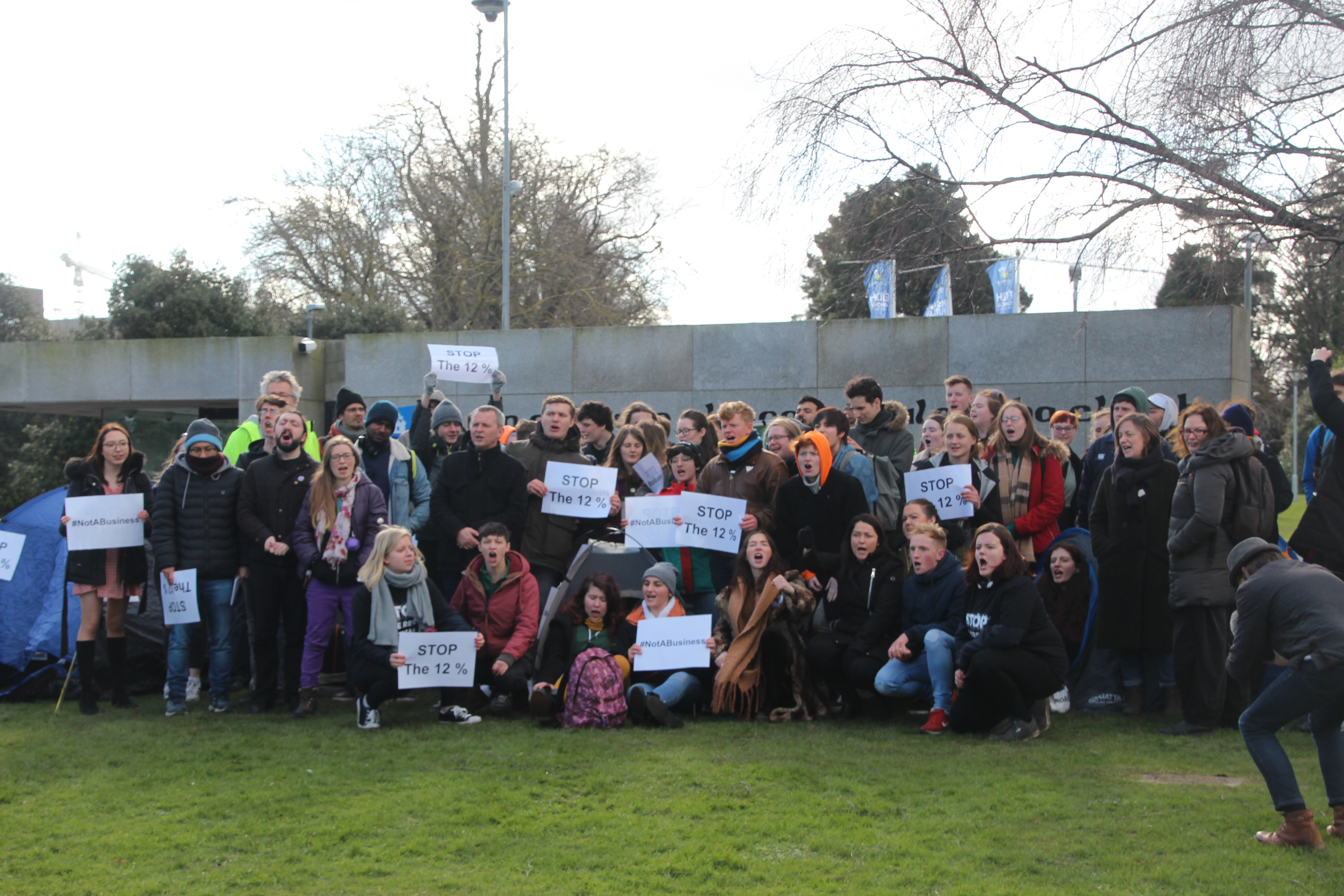 In University College Cork, UCC, students have been running a tent action day and night since Monday 25th of February. In their “day 3” update on their Twitter page the UCC SU explained that “Winds are high but hopes are higher.” The Union reported that more than 50 students had slept on the campus’ Quad in tents thus far and pledged not to leave the campus quad until the university’s management scrap the proposed 3% increase of on-campus accommodation. Similar protests began in NUIG, where students also pitched tents to protest proposed increases in on-campus accommodation costs.