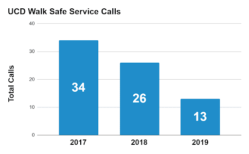 The total calls made to the UCD ‘’Walk Safe Service’’ have decreased by 62% over the last three years, the College Tribune reports.