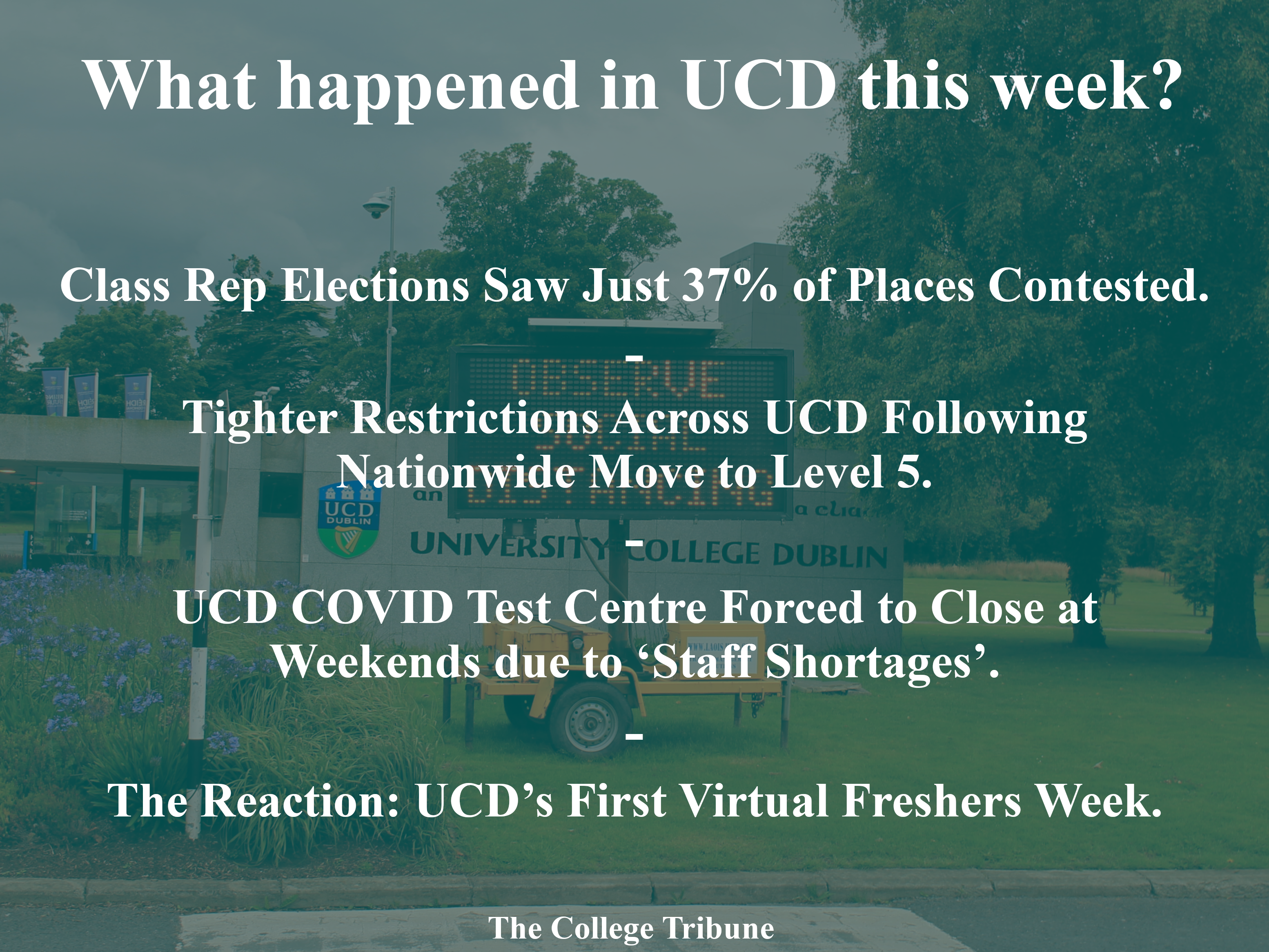 Last week, the Belfield campus saw the completion of the University College Dublin Students’ Union class rep elections, while Ireland moved to a 6-week level 5 lockdown. UCD reacted by announcing tighter restrictions on campus. Here is the biggest news of the 5th week of term!